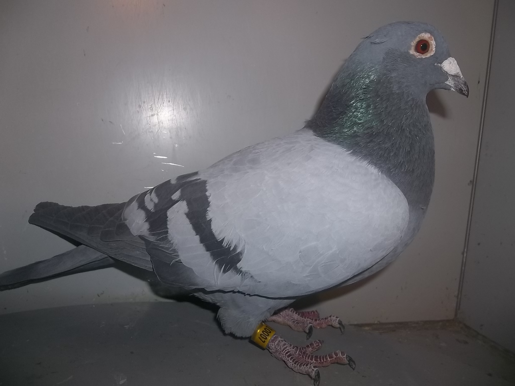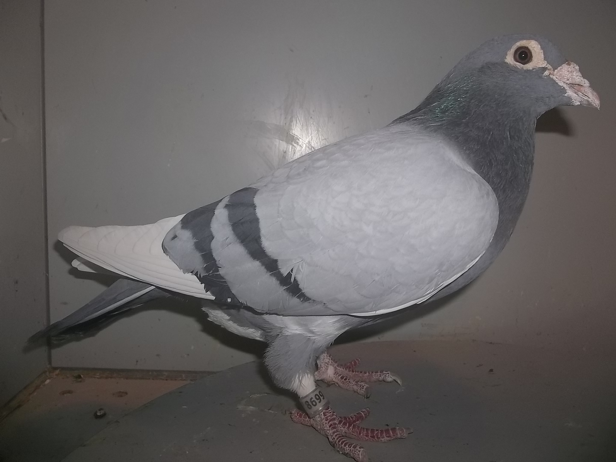 AU 07 MPC 8699 Blue Bar W/F Cock One of Harold Belka's breeding cocks direct out of his stock loft, that is only avaialble as he is cutting down due to recent health concerns. He is down from Harold's Gaby-Vandenbeele bloodlines. This line is responsible for numerous money winners. #8699 has an excellent pearl eye, and is a proven breeder of some excellent racers. Price is $40 plus shipping SOLD HW