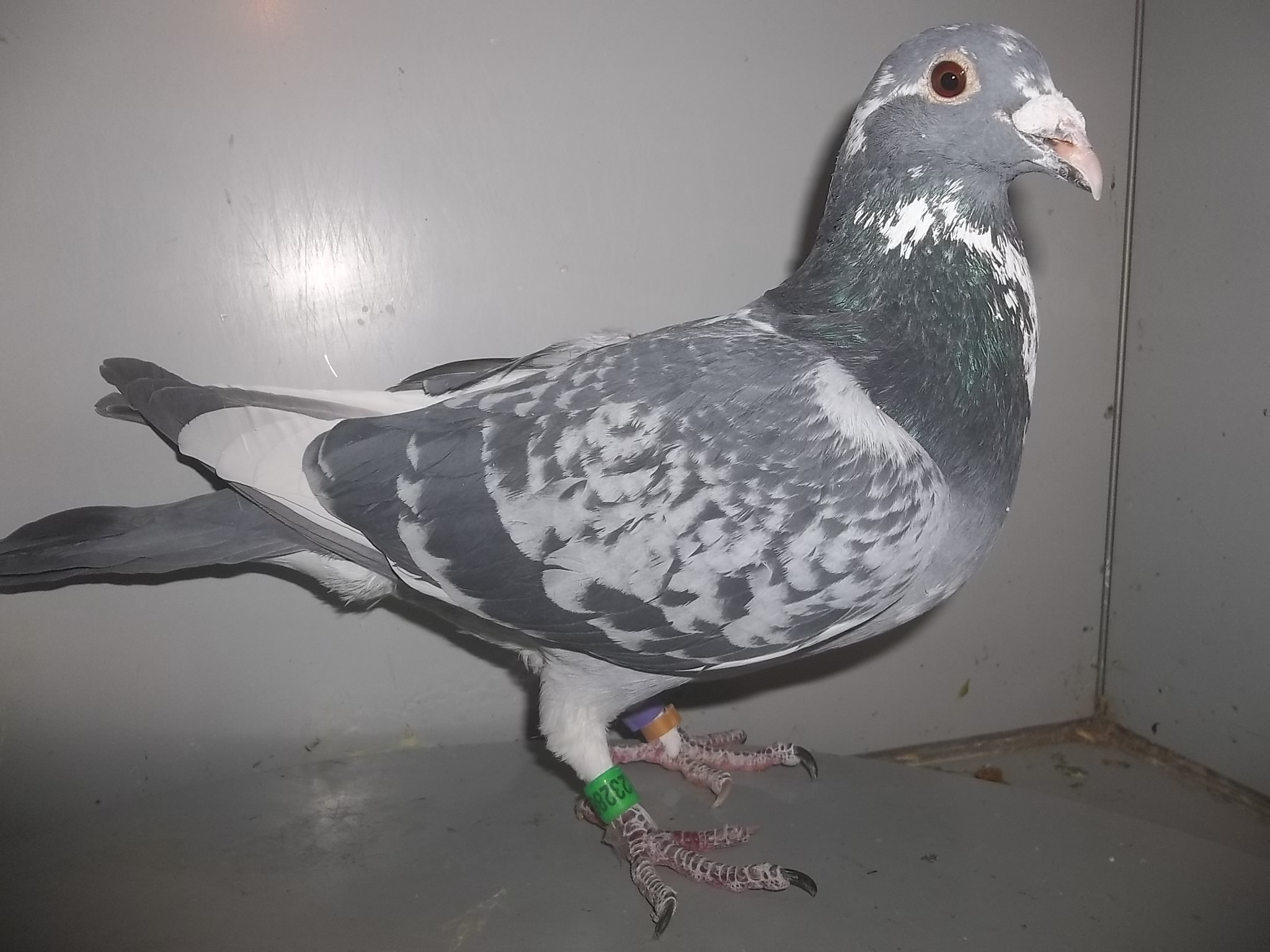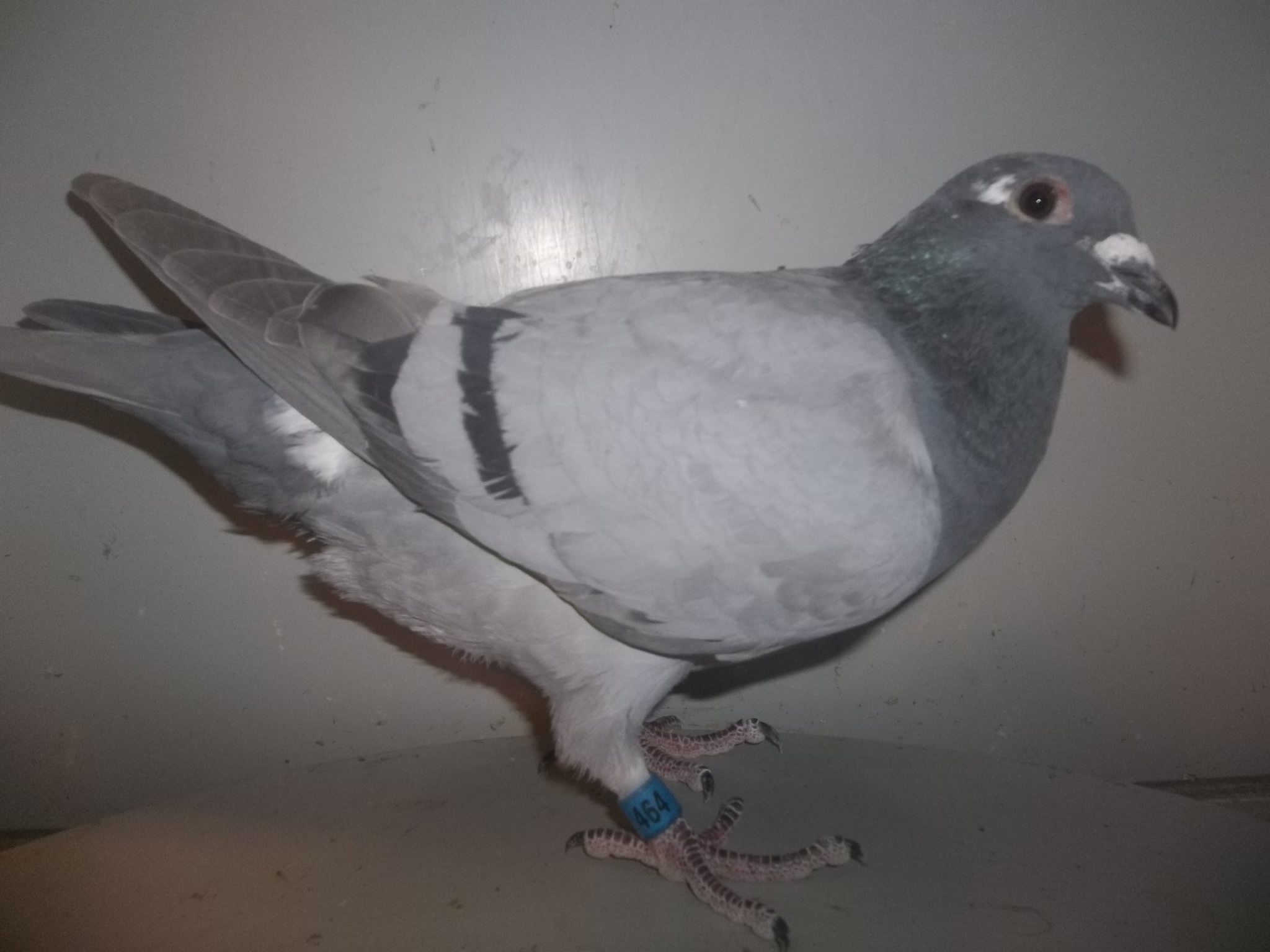 AU 15 VIK 464 Blue Bar Hen Bred by the master breeder himself Harold Belka, and directly off breeders from his stock loft. She is medium built with a pearl eye, and from a winning line of pigeons that have won for others over the last three plus decades all over the U.S. Price is $40 plus shipping SOLD HJ