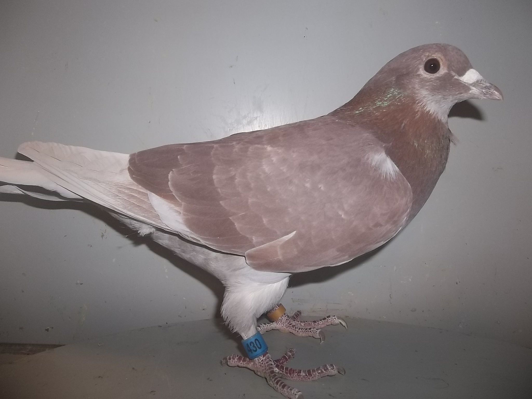 AU 15 VIK 429 Powder Silver Hen Straight Imbrecht that was bred by master breeder Harold Belka direct off his top breeders. She is medium built with a red/green breeding eye. Price is $55 plus shipping, and one I'd strongly suggest on this page with many years ahead of her to breed winners SOLD TB