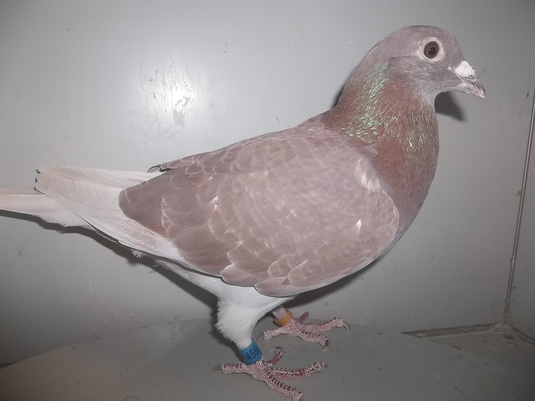 AU 15 VIK 458 Mealy Hen Straight Imbrecht that was bred by master breeder Harold Belka direct off his top breeders. She is medium built with a chestnut eye. If you are looking to add some color to your loft and like reds & silvers like I do, this is one I'd suggest as she is very well bred. Price is $45 plus shipping SOLD